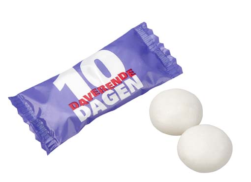 De verpakking van al onze snoepjes worden voorzien van een bedrukking naar uw wens. De enkelstuks verpakkingen kunnen gebruikt worden op de balie van een receptie, maar ook tijdens beurzen, congressen of in uw horeca zaak. Willen jullie biologisch snoep? Géén probleem, laat het ons weten.